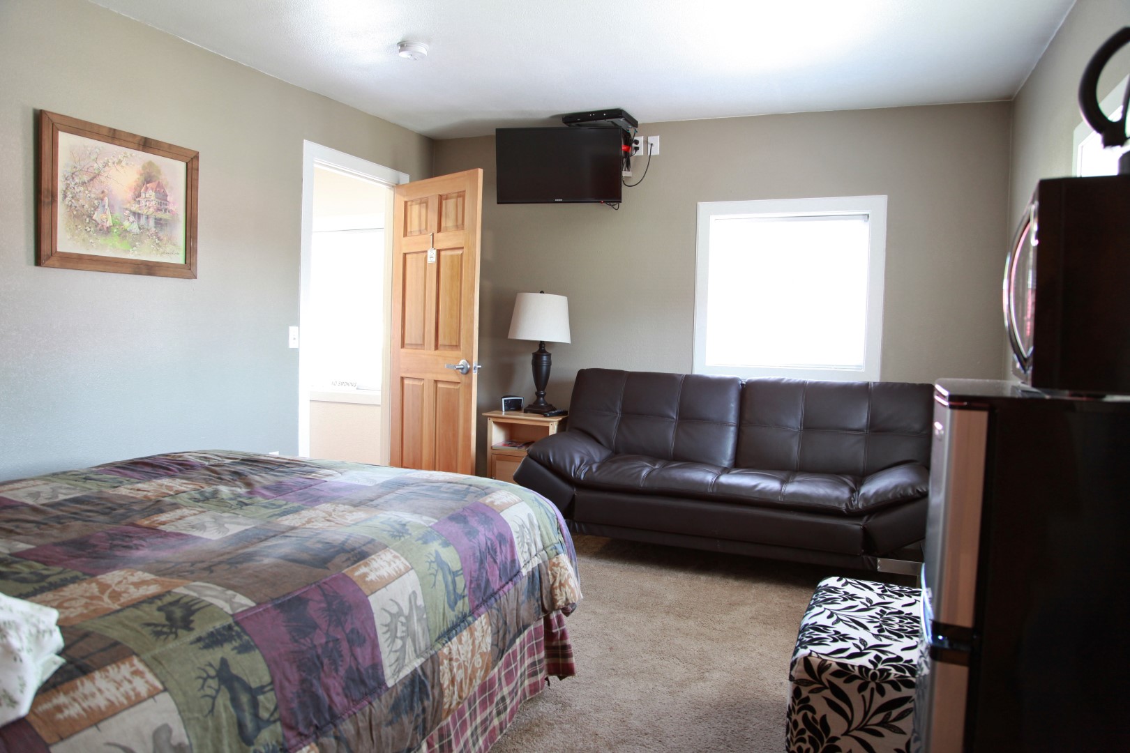 The Queen Suites offer a home away from home. Cook in your own private kitchen, kick back in the living room for visiting, watching tv, or hop online to research our beautiful area and places to visit. Enjoy the privacy and large space for your comfort.